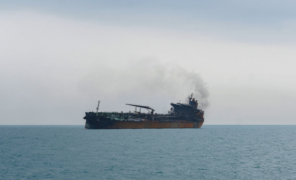 | A damaged tanker carrying Iraqi fuel oil in waters near Basra, Iraq, on Thursday. Mohammed Aty/Reuters |
