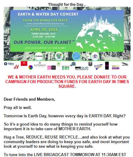 OMMM + Good News Corp/Producer Pause the World for Peace – Earth Day/Clergy for Safe Cities