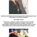 My friend, Judy Gilbert, the hockey legends wife & Humanitarian is Buzz Aldrin friend...she wrote on Facebook Buzz Aldrin. Made it To the moon…and back. He told me it took so much more than education, discipline and physical strength. It took years of determination and believing that any goal is possible “but it was still hard to believe when l took my first step onto the moon’s surface.” …