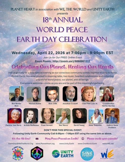 New York, NY — April 22, 2026 — Planet Heart, in collaboration with We, The World, is proud to present the 18th Annual World Peace Earth Day Celebration, taking place on Wednesday, April 22, 2026, from 7:00–9:00 PM ET.